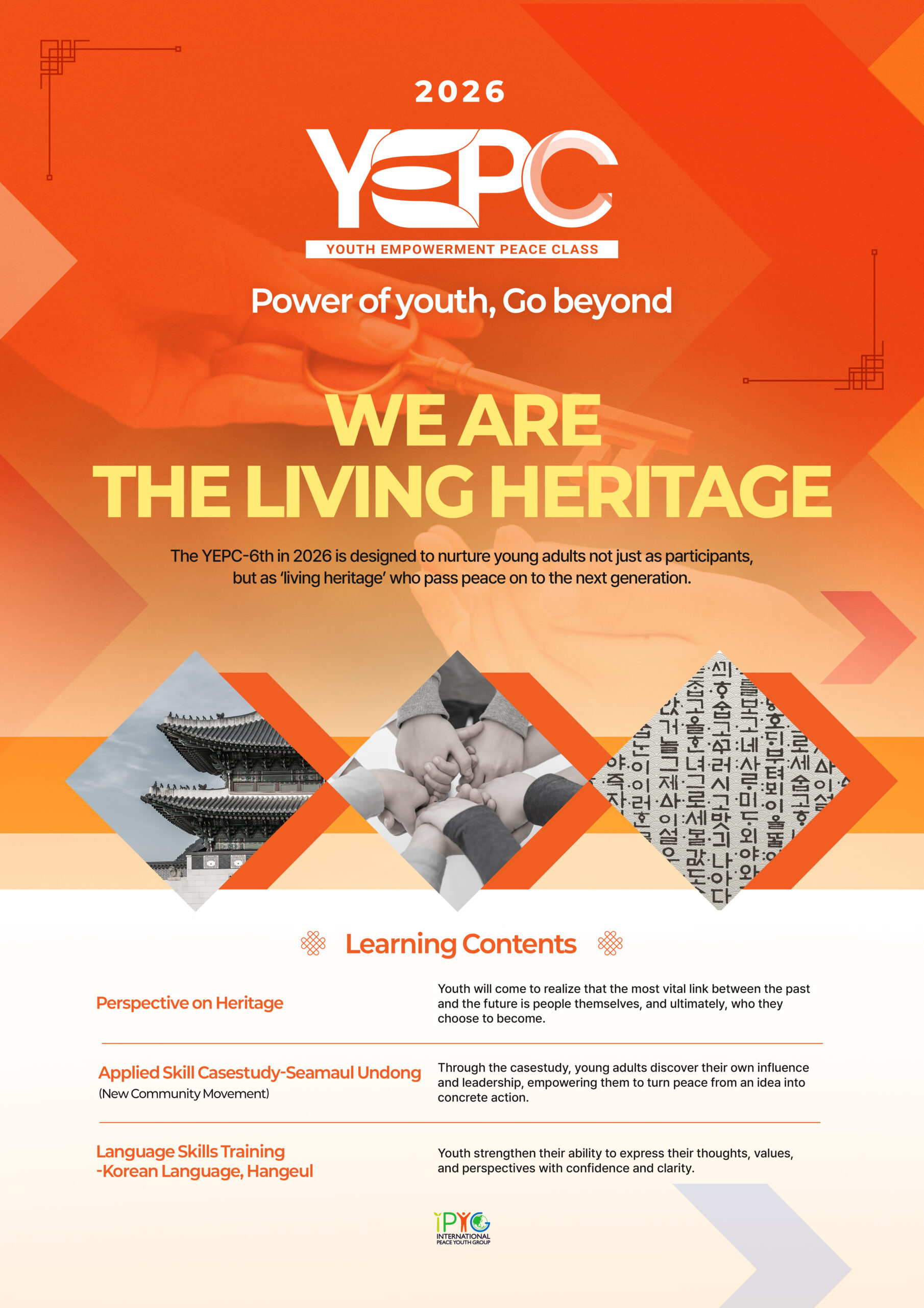The YEPC-6th in 2026 is designed to nurture young adults not just as participants, but as โliving heritageโ who pass peace on to the next generation.