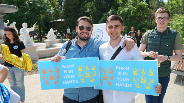 After the official event, youth and other participants went out to the Cluj-Napoca Central Park and walked together to raise awareness of the need for bringing about positive change and energy in their community. They greeted people passing by and many joined them to march for peace.