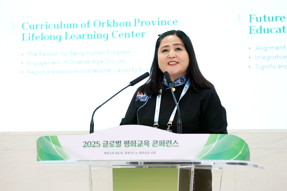 어이도우 어트곤바야르 몽골 어르헝 아이막 평생교육원 원장은 몽골 평생교육원 평화교육과 LP 활동 현황을 발표했습니다. “몽골의 30개 평생교육원 중 27곳이 HWPL과 MOU를 체결했고, 71명의 교사가 평화교사로 양성되었습니다. 또한, ‘평화의 푸른 물결’ 나무심기 캠페인을 통해 6천 그루 이상의 나무를 심었고, 5천 명 이상이 캠페인에 참여했습니다. 평화는 개념이 아니라 교육과 실천을 통해 지역사회 속에 뿌리내려야 합니다.”라며 구체적인 성과를 공유했습니다.