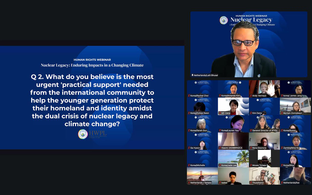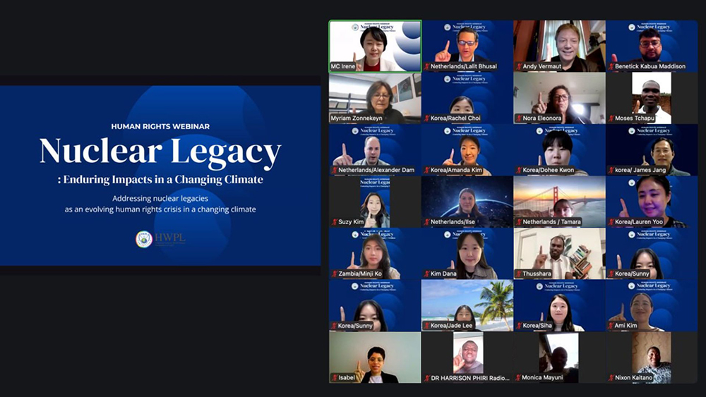이번 웨비나에는 6개 대륙의 법률·환경·외교 분야 전문가 및 시민사회 관계자들이 참석했습니다. 참석자들은 마셜 제도의 핵 오염 문제가 단순한 과거의 유산에 그치지 않고, 기후 위기와 맞물려 인류 전체를 위협하는 ‘전 지구적 안보 문제’로 부상하고 있음을 재확인했습니다. 이번 웨비나는 이 문제를 시급히 공론화하고 국제 협력 방안을 모색하는 자리로서 큰 의미를 가졌습니다.